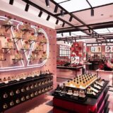 The Shanghai Plaza 66 store was designed in collaboration with renowned architect Vincenzo De Cotiis, who combined brutalist elements with luxurious materials to create a distinctly modern feel. The store features display fixtures and plinths constructed in a variety of textures, from concrete to ceramics to high-gloss finishes. The core colors of the Burberry check – beige, black, white, and red – are explored and developed throughout the store, while the iconic pattern itself is reinterpreted in the gridded ceiling’s mirrored zones, creating a sense of openness as it reflects the roaming tiled chequerboard floors.